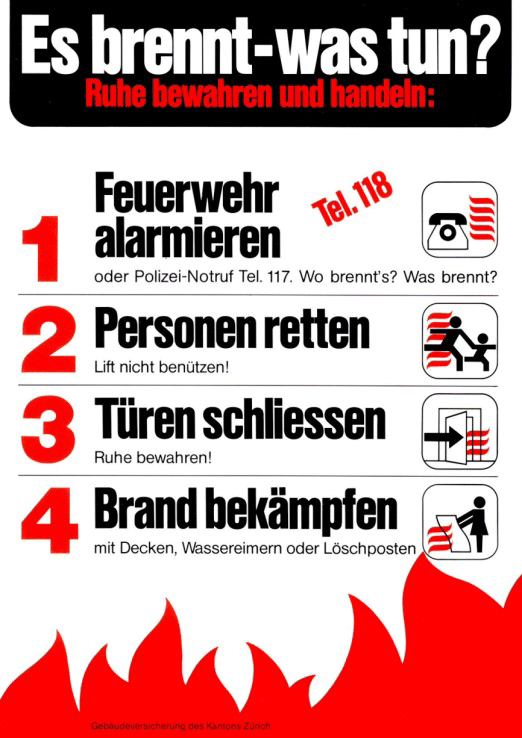 - Fenster und Türen schliessen (Vermeiden der Brandausbreitung)